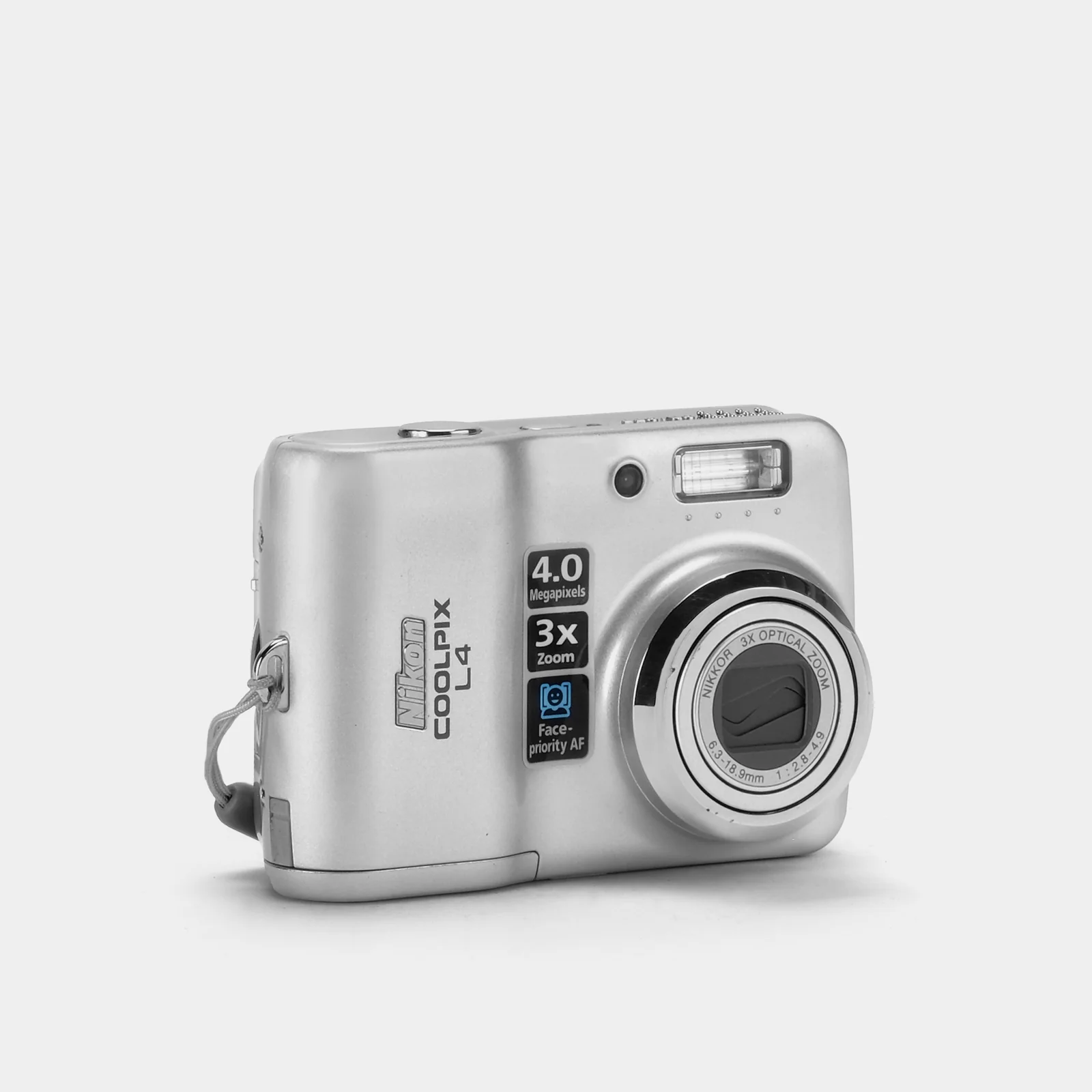 Nikon Coolpix L4 是一款輕巧的傻瓜數碼相機,配備400萬畫素感光元件和3倍光學變焦鏡頭,適合日常拍攝。其簡易操作與經典設計,讓攝影愛好者輕鬆記錄美好瞬間。