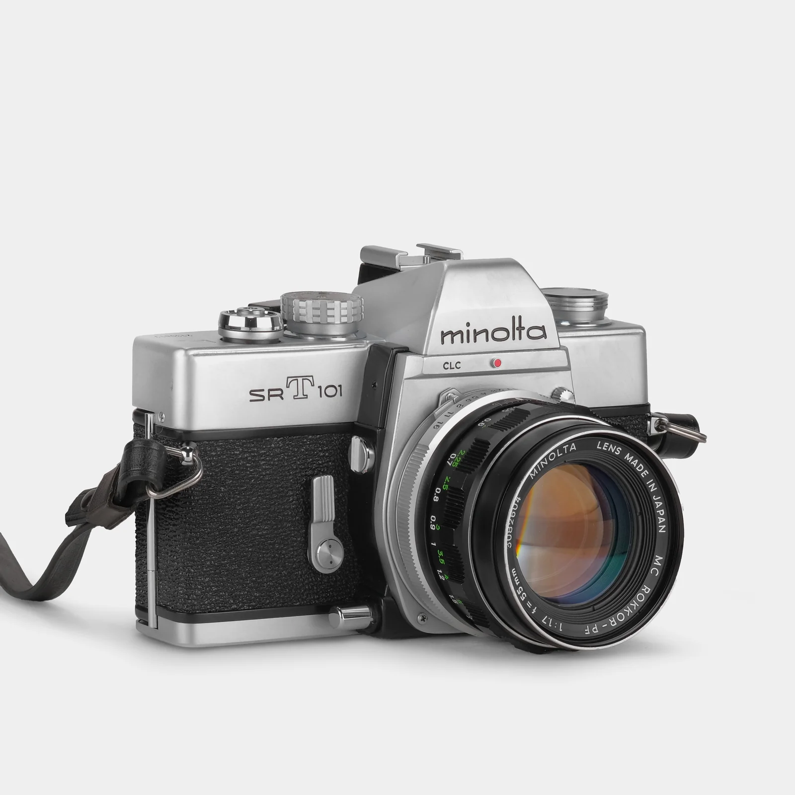 Minolta SRT 101 是一款傳奇的35mm單眼底片相機,以其堅固機身與全機械操作聞名。配備TTL測光系統與可更換鏡頭,適合攝影愛好者探索底片攝影的深度與質感,重現經典攝影魅力。